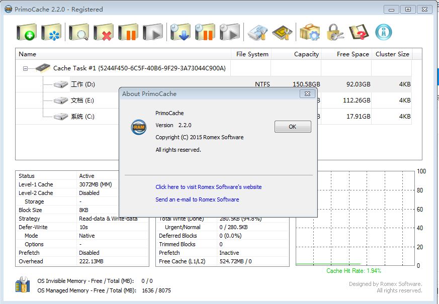 PrimoCache 破解版 - 内存做硬盘缓存加速工具