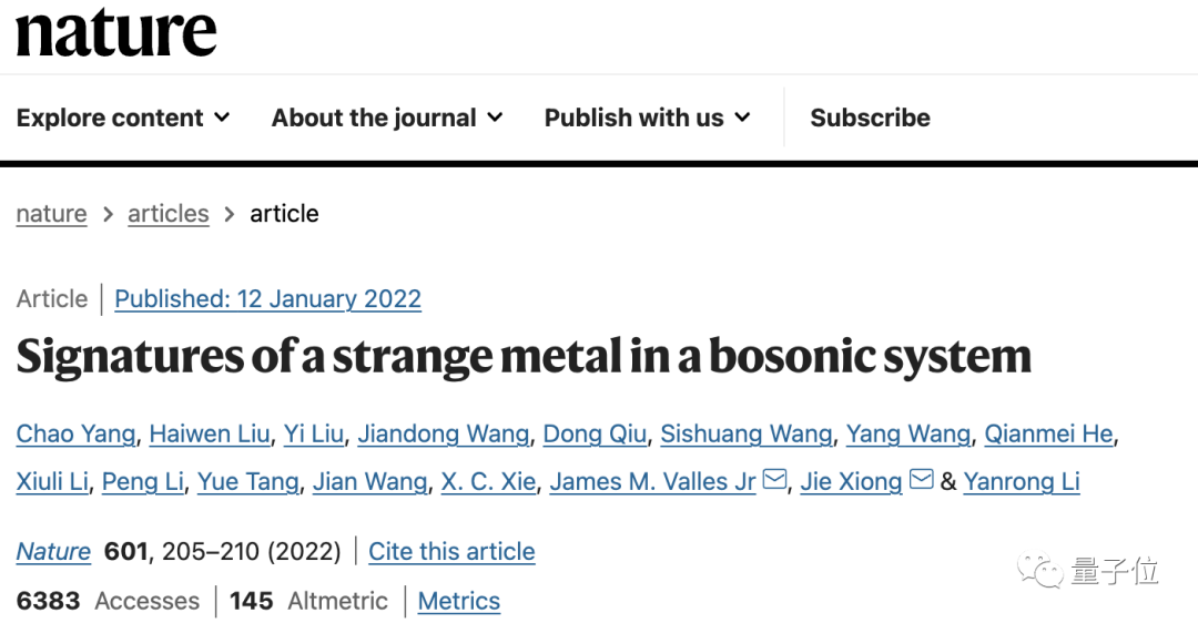 他今年的这篇 Nature 论文题为《玻色子体系中的奇异金属态》(Signatures of a strange metal in a bosonic system)。