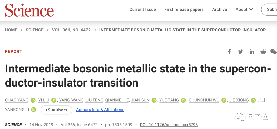 杨超 2019 年发表的 Science 论文题为《超导-绝缘量子相变中的玻色金属态》(Intermediate bosonic metallic state in the superconductor-insulator transition)。