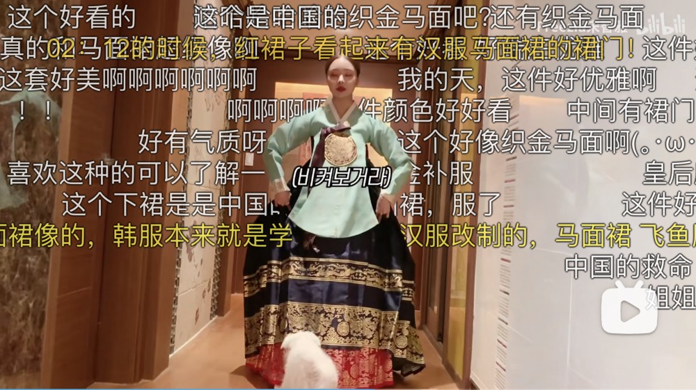 她在vlog中穿的韩服,被中国网友质疑是明朝的“织金马面裙”;她下厨做饭,营销起名“宣纸饺子”,中国网友困惑:这不就是春卷吗?