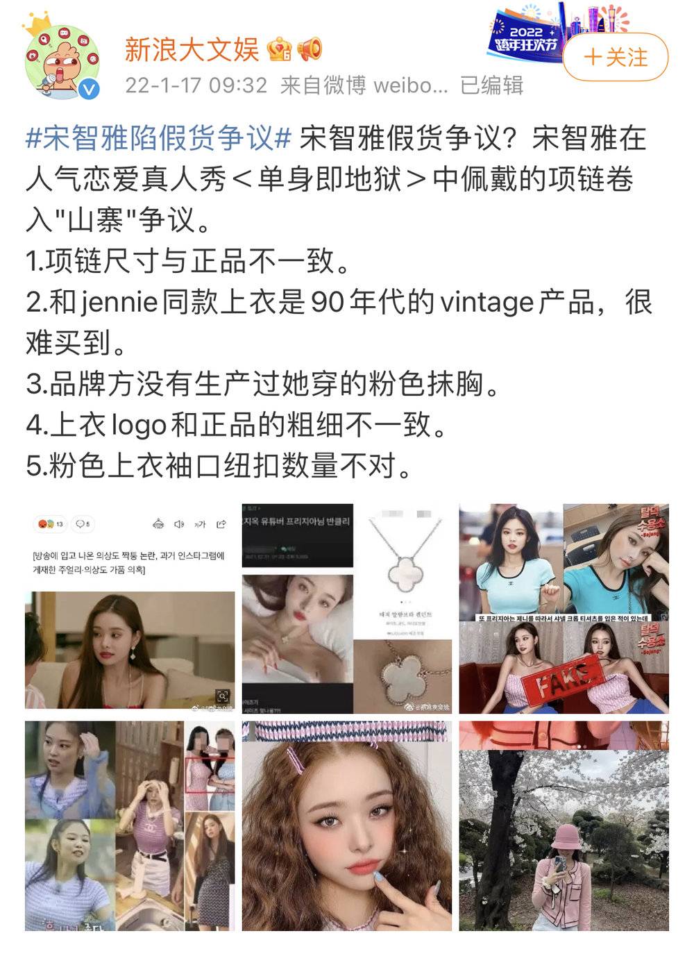 从一月初开始,已经有网友开始质疑她的一件抹胸疑似高仿Dior,实际上是另外一个价值85元的品牌,宋智雅被嘲笑“花小钱办大事”。