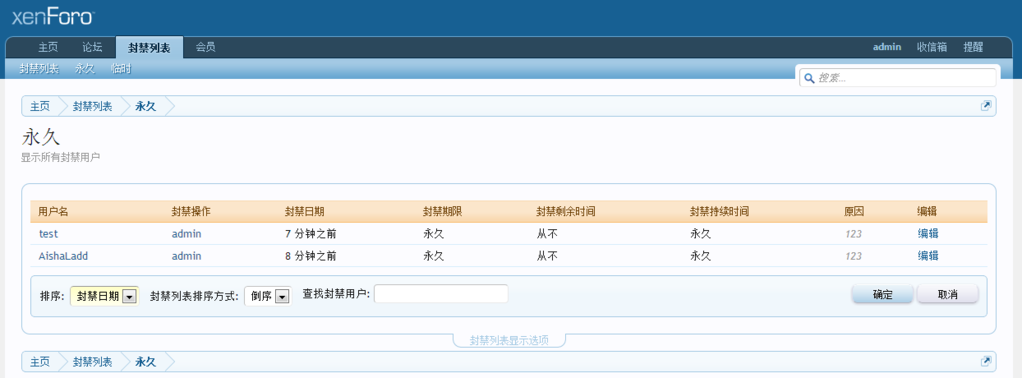 在导航栏中显示封禁列表,封禁剩余时间等信息。