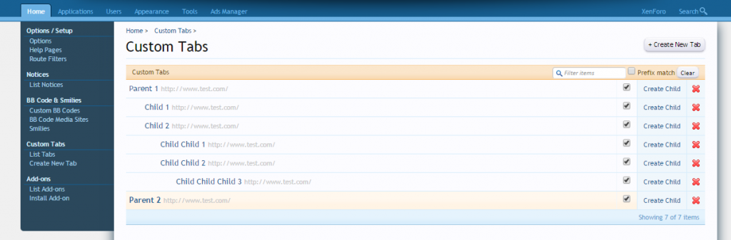 Custom Tabs