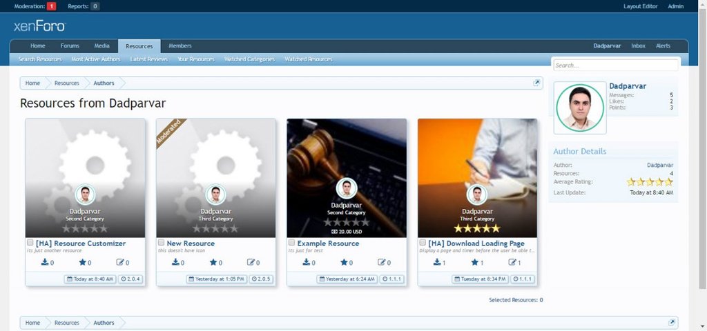 - Resource Manager's Author Page + Resource Manager's Profile Tab