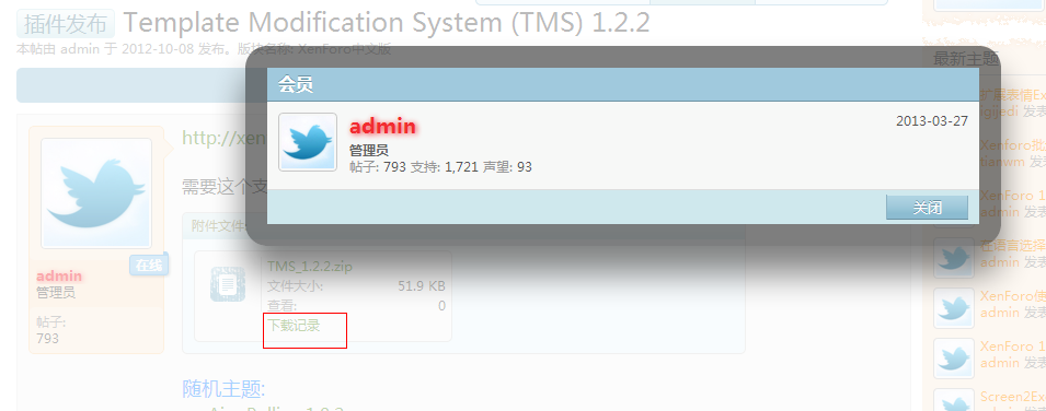admin 发布了新资源: Download Tracker 简体中文版(版本 2.00)- 查看谁下载过附件 查看资源详情...