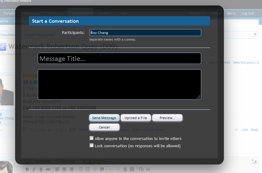 admin 发布了新资源: Start Conversation from Post (Ajax) - 在贴内加入短消息快捷按钮 查看资源详情...