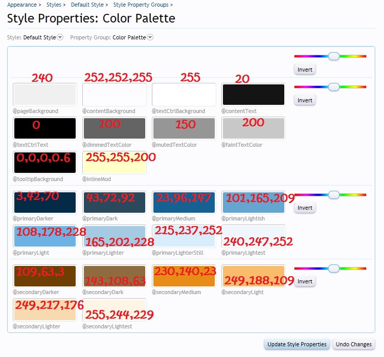 美化 XF Default Style's Color Palette RGB Codes
